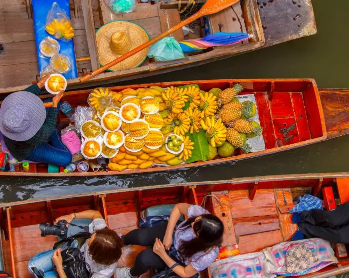 Nachdem Sie in der tropischen Hitze bei lärmendem Verkehr durch Bangkok gestapft sind, gibt es sicher Momente, an denen Sie sich zu grüneren und ruhigeren Orten träumen. In solchen Momenten empfehlen wir Ihnen einen Besuch im Benjakiti- oder Lumphini-Park. Sie können aber auch auf die Westseite des Flusses wechseln, wo eine ganz andere Welt ohne Wolkenkratzer und hupenden Tuk-Tuks auf Sie wartet. Dort erlebt man das authentische Bangkok und ein Labyrinth an Kanälen, an denen die Häuser auf Pfählen errichtet wurden und die Post noch immer per Boot kommt.
