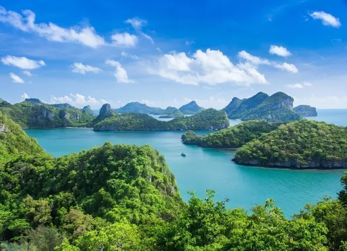 Der Ang Thong Marine Nationalpark besteht aus 42 kleinen Felsinseln, die in Reih und Glied nebeneinander liegen. Es gibt hier wunderschöne Tropenstrände, fantastische Schnorchelplätze, Höhlen, Seen, Wasserfälle und beeindruckende Aussichtspunkte.
