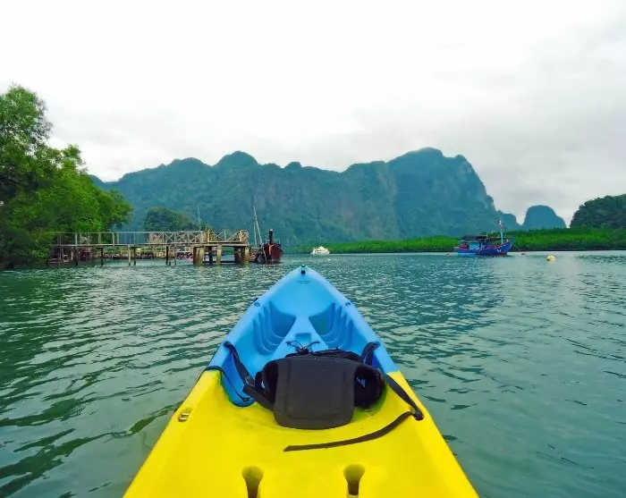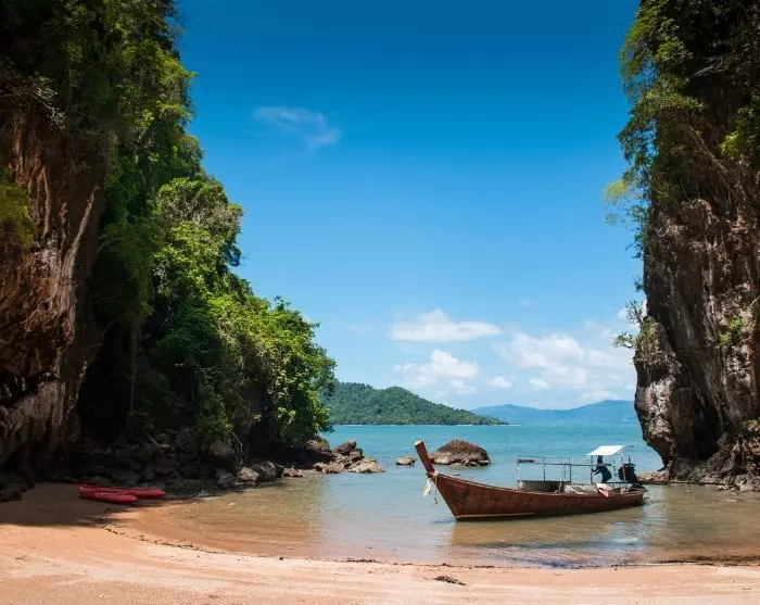 Weiter geht es mit dem Langboot. Sie besuchen die Inseln Koh Aung und Koh Talabeng mit ihren typischen Kalksteinfelsen und wunderschönen Buchten. Vor Koh Talabeng wartet eine unvergessliche Fahrt mit dem Kajak rund um die Insel auf Sie. Sie erleben die unberührte Natur, die beeindruckenden Kalksteinfelsen und die faszinierenden Höhlen.