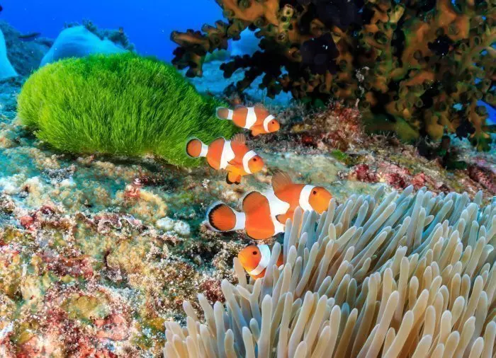 Sie gehen wieder zurück an Bord des Bootes, das Sie zum ersten Schnorchelplatz des Tages bringt. Mit Brille, Schnorchel und Flossen springen Sie ins Wasser. Dort erleben Sie eine wunderschöne Unterwasserwelt mit herrlichen Korallen und gestreiften Fischen. Wenn Sie Glück haben, finden Sie sogar Nemo.