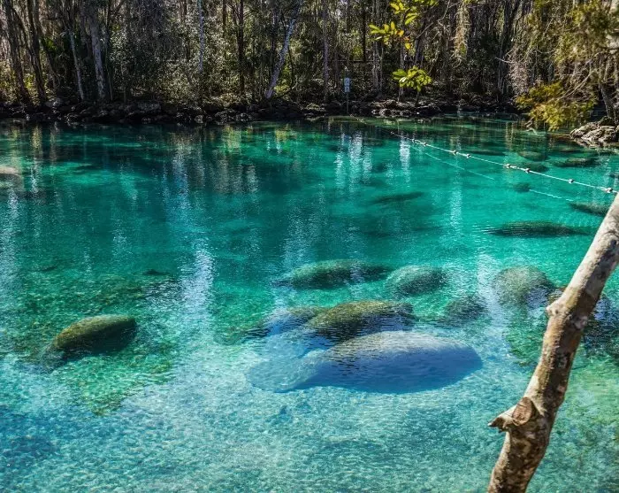 Der heutige Tag bildet da keine Ausnahme, und Sie können einen Zwischenstopp in der kleinen Stadt Crystal River einlegen, der Heimat der großen und ruhigen Rundschwanzseekühe. Wenn die Wassertemperaturen im Golf von Mexiko in den Wintermonaten sinken, schwimmen Hunderte von Seekühen zu den heißen Quellen von Three Sisters Springs. Hier können Sie die großen Tiere vom Rand der mehr als 3 km langen Pfade aus beobachten, wie sie langsam an der Oberfläche schwimmen, und zu bestimmten Tageszeiten ist es sogar möglich, ein Kajak zu mieten und in ihre Nähe zu paddeln (muss vor Ort gebucht werden). Die Seekühe können an verschiedenen Orten in Florida beobachtet werden, aber in Three Sisters Springs sind sie normalerweise in Herden versammelt und leicht zu sehen.