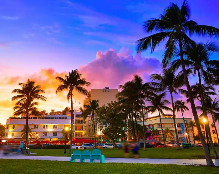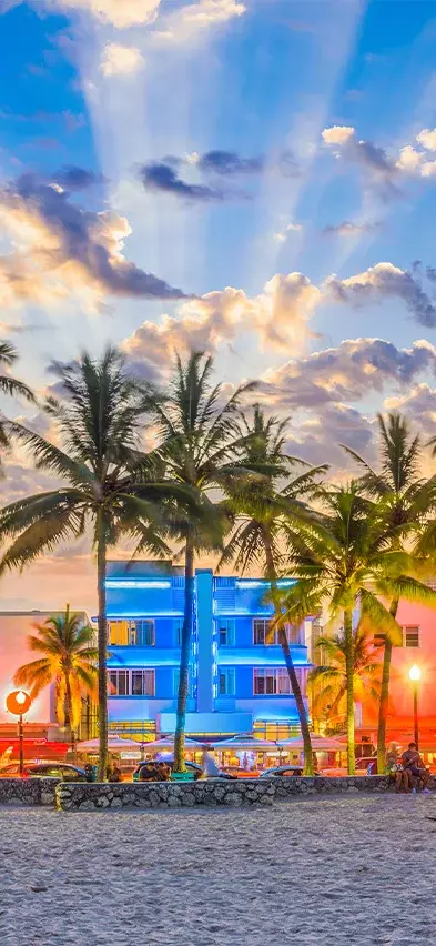 Sie werden sofort wissen, dass Sie sich Miami nähern, wenn der weite Blick auf den Ozean von der Stadtlandschaft mit ihren Hochhäusern, großen Autos und Kreuzfahrtschiffen abgelöst wird. Sie wohnen in Miami Beach, das für seine farbenfrohen Art-déco-Häuser, seinen Strand und die Geschäfte entlang der berühmten Collins Avenue bekannt ist.