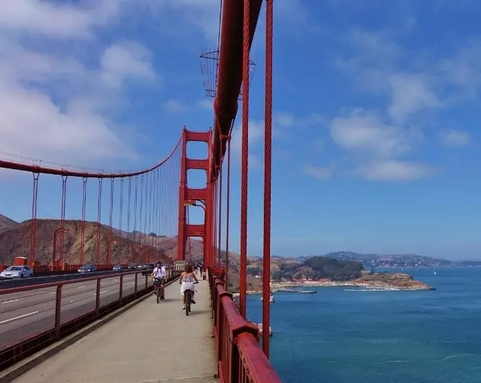 Vom Bereich rund um den Fisherman’s Wharf können Sie einen herrlichen Blick auf die weltberühmte rote Hängebrücke, die 1937 eröffnete Golden Gate Bridge, genießen. Doch nichts geht über das Gefühl, die Brücke zu überqueren und ihre beeindruckende Struktur über sich hinwegziehen zu sehen. Auf der anderen Seite erwartet Sie ein atemberaubender Blick auf die Dächer der Stadt und die Alcatraz-Insel, die von 1934 bis 1963 einige von Amerikas berüchtigtsten Kriminellen beherbergte, darunter Ganove Al Capone. Erwägen Sie, die Brücke mit dem Fahrrad zu überqueren, die an verschiedenen Orten rund um den Fisherman’s Wharf ausgeliehen werden können.