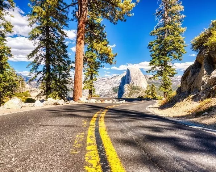 Ein weiterer atemberaubender Aussichtspunkt im Park ist der Tunnel View, wo Sie einen fantastischen Blick auf das Yosemite Valley, Bridalveil Fall und die ikonischen Berge El Capitan und den Half Dome haben.