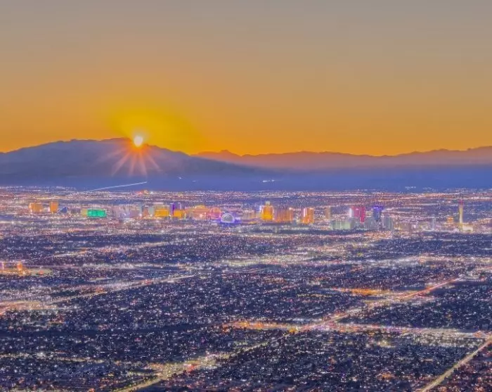 Nach ein paar Stunden Fahrt von Barstow können Sie erstmals Las Vegas am Horizont erahnen. Die skurrilen Gebäude, die über die Landschaft hinausragen, enthüllen die typischen Themenhotels entlang des fast 7 km langen Las Vegas Boulevard – besser bekannt als The Strip.