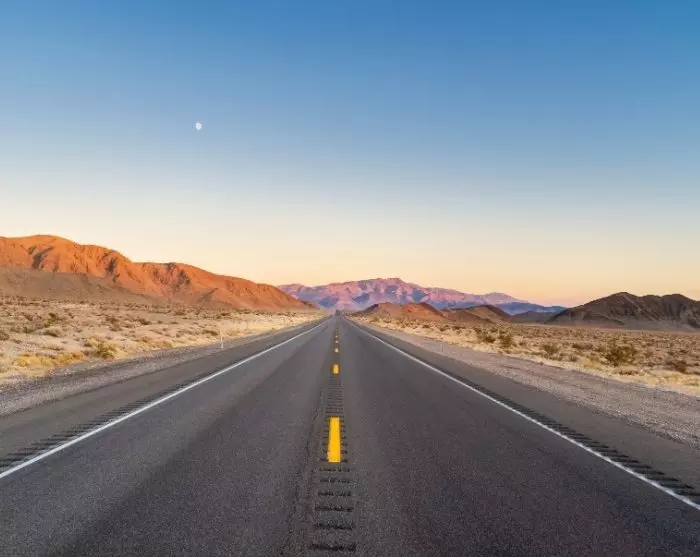 Spüren Sie erneut einen großen Kontrast, wenn Sie Los Angeles verlassen und Richtung Las Vegas fahren. In kürzester Zeit, sehen Sie die Wolkenkratzer der Stadt im Rückspiegel verschwinden, ersetzt durch Wüste, rollende Büsche auf der Straße, Diners und eine verlassene Geisterstadt.