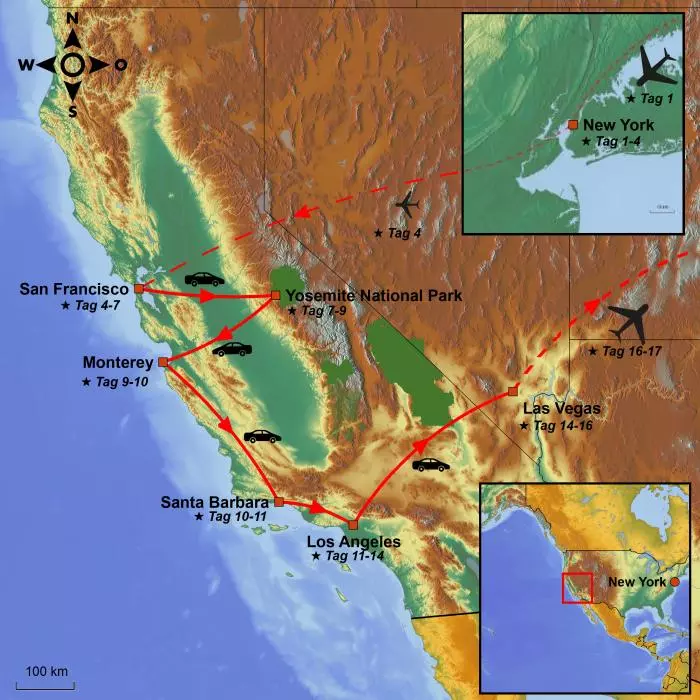 Freuen Sie sich auf einen Besuch in NYC, bevor die großen Kontraste ders westlichen USA locken. Juwelen wie San Francisco, Yosemite, der Highway 1 und Los Angeles erwarten Sie. Abschließend erleben Sie das pulsierende Leben der Wüstenstadt Las Vegas.
