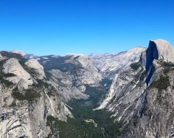 In den Sommermonaten, wenn der Schnee geschmolzen ist, ist Glacier Point auf etwa 2200 Metern Höhe ein unverzichtbarer Aussichtspunkt. Sie können mit dem Auto hochfahren oder eine Bustour buchen (Buchungen werden direkt im Park nach dem Prinzip „Wer zuerst kommt, mahlt zuerst“ oder telefonisch im Voraus vorgenommen, mehr dazu können Sie hier lesen). Wenn Sie Lust auf eine Wanderung ab Glacier Point haben, können Sie mit dem Bus hinauffahren und den Four Mile Trail hinunterwandern.