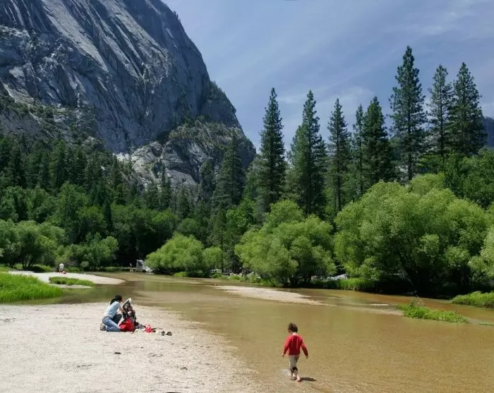 Wenn Sie sich dem Park über den Arch Rock Entrance nähern, werden Sie bemerken, wie das geschäftige Stadtleben San Franciscos allmählich abschwächt und nur noch karge Landschaften sowie die majestätischen Silhouetten der Sierra Nevada-Gebirgskette der Wüste übrig bleiben. Dort liegt der Yosemite Nationalpark. Die letzte Stunde Fahrt ins Yosemite Valley ist atemberaubend schön mit steilen Felswänden, dichten Kiefernwäldern und dem rauschenden Merced River, der die Straße parallel begleitet.