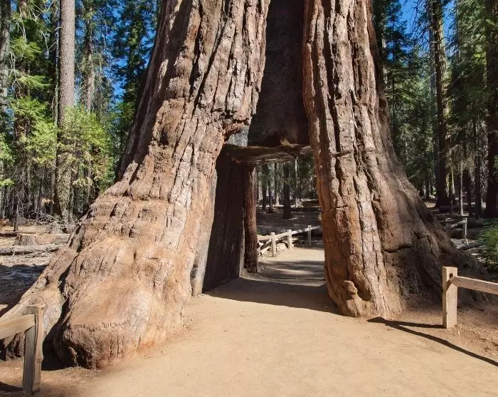 Wenn Sie Ihr Hotel verlassen, sollten Sie den Navi so einstellen, dass Sie über Mariposa Grove fahren. Hier finden Sie einen Wald mit einigen der größten Bäume der Welt – den riesigen Mammutbäumen. Er ist über die angelegten Pfade leicht zu erreichen (außer bei Schnee in der Wintersaison). Hier fühlt man sich unter den riesigen Baumstämmen sehr klein, und ganz besonders am California Tunnel Tree, durch den man hindurchgehen kann.