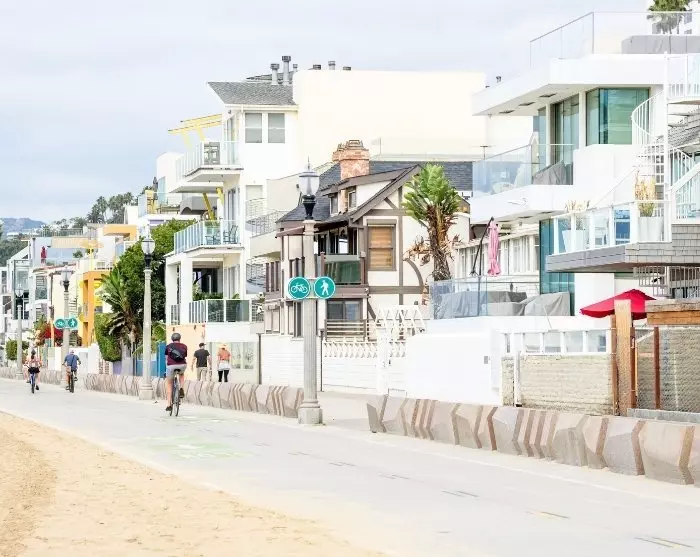 Sie können auch in Venice Beach vorbeischauen, einem Treffpunkt für viele Arten von Menschen mit Kunst, Cafés und Restaurants. Oder Sie fahren nach Santa Monica, das ganz in der Nähe liegt. Hier finden Sie einen Vergnügungspark am Strand und ein charmantes, autofreies Einkaufsviertel an der Third-Street Promenade. Wir empfehlen Ihnen unbedingt eine Fahrradtour auf dem gepflasterten Weg zwischen den beiden Stränden.