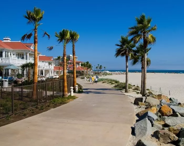 Oder machen Sie einen Ausflug nach Coronado Island. Von hier aus können Sie den atemberaubenden Blick auf die Innenstadt von San Diego genießen. Die bezaubernde Halbinsel ist bekannt für ihre wunderschönen Strände und das Hotel Del Coronado, ein historisches Hotel aus Holz aus dem Jahr 1888. Es wurde für Filme mit berühmten Schauspielern und Schauspielerinnen wie Marilyn Monroe verwendet.