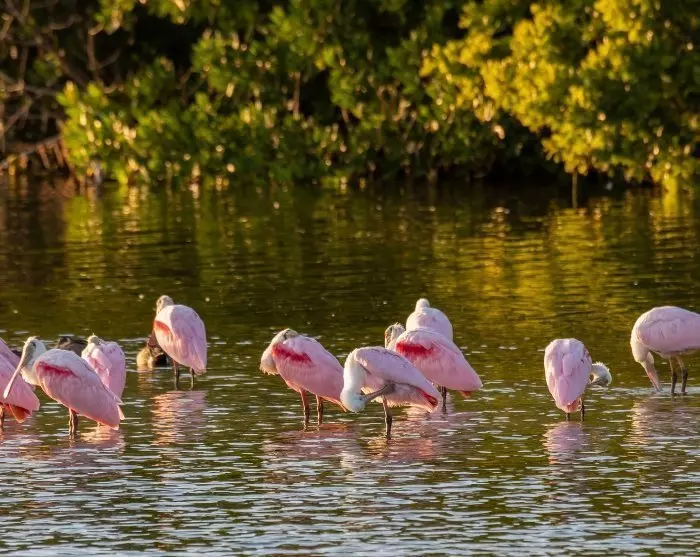 Auf Sanibel können Sie in der Bucht von Tarpon Kajak fahren, Fahrräder mieten und die kleinen Buchten erkunden. Am Bowman’s Beach finden Sie auch spezielle Muscheln (aber denken Sie daran, dass Sie die Muscheln nicht mitnehmen können). In Sanibel befindet sich auch das berühmte J.N. „Ding“ Darling National Wildlife Refuge, eines der größten Mangroven-Ökosysteme der USA. Das Reservat beherbergt mehr als 245 verschiedene Vogelarten, darunter den wunderschönen rosafarbenen Rosalöffler, der jedes Jahr viele Vogelliebhaber anzieht.