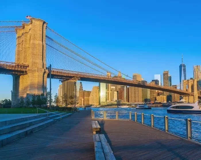 Ab dem Startpunkt werden Sie und Ihre Gruppe von Ihrem Guide über die Brooklyn Bridge begleitet, während Ihr Guide über die faszinierende Geschichte der Brücke erzählt und Sie den fantastischen Blick auf Manhattan als Kulisse genießen können. Auf der anderen Seite der Brücke erreichen Sie das DUMBO-Viertel, wo Sie die Uferpromenade erleben und die Brooklyn Bridge aus einem neuen Blickwinkel sehen können. Das DUMBO-Viertel ist bekannt für seine Promenade am East River sowie für seine charmante Atmosphäre mit vielen Designern, Künstlern, speziellen Läden und großartigen Restaurants. Zum Schluss erreichen Sie den Brooklyn Bridge Park, wo Sie die Gegend auf eigene Faust erkunden können.