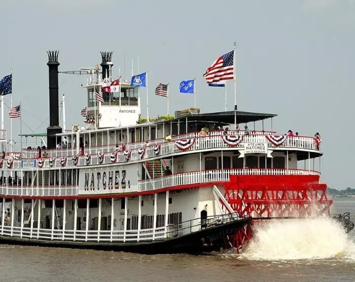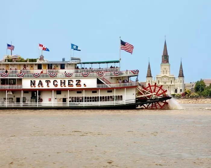 Das Boot fährt vom historischen French Quarter ab und Sie müssen rechtzeitig am Treffpunkt bereit stehen. Die eigentliche Kreuzfahrt beginnt nach ca. einer Stunde. Die Gäste des Bootes speisen zu unterschiedlichen Zeiten in zwei Durchgängen: um ca. 18:00 oder 19:45 Uhr. Während Sie Ihr köstliches Abendessen genießen, werden Sie mit Live-Jazz von der Grammy-nominierten Band „Dukes of Dixieland“ unterhalten. Wenn Sie nicht am Tisch sitzen, können Sie das Schiff erkunden und den beeindruckendes Dampfmaschinenraum besuchen. Oder Sie genießen einfach die frische Luft und den wunderschönen Blick auf die Skyline der Stadt sowie den mächtigen Mississippi River.