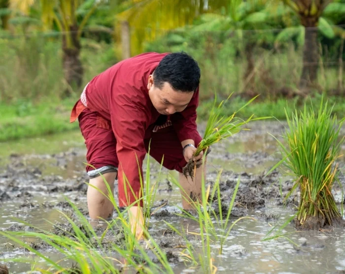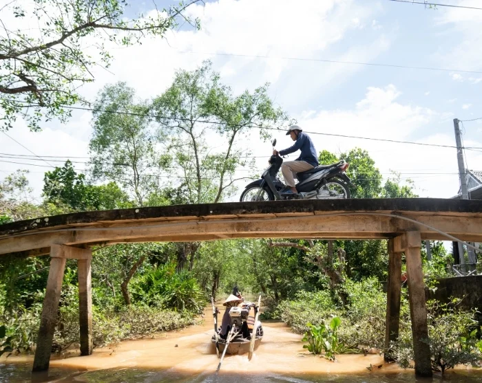 Anschließend geht es weiter zu unserem soziales Nachhaltigkeitsprojekt in Vinh Long, das von einem unserer Kooperationspartner vor Ort ins Leben gerufen wurde. Sie schlendern durch das Dorf, während Ihr Guide Ihnen etwas über das Projekt erzählt. Im Dorf können Sie sich auch selbst in die traditionelle Landwirtschaft einbringen. Zusammen mit den lokalen Bauern messen Sie Ihre Kräfte beim Reisanbau und, je nach Jahreszeit, pflanzen Sie entweder die zarten Reispflänzchen oder helfen bei der Ernte. Das ist lehrreich und erdverbunden zugleich und vermittelt Ihnen einen einmaligen Einblick in den Alltag der ländlichen Gebiete Vietnams, wie auch in die mit nachhaltiger Landwirtschaft verbundene Arbeit. Als Teilnehmer an der Tour unterstützen Sie die Familien in Vinh Long, da ein Prozentsatz des Reisepreises direkt in das Projekt einfließt, über das Sie hier mehr erfahren können.
