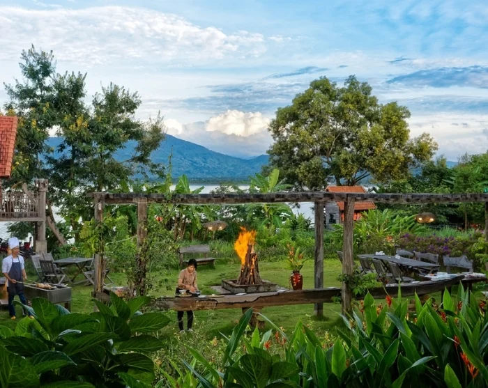Nach der Rückkehr in den Lak Tented Camp können Sie sich auf einen stimmungsvollen Abend bei traditioneller Gong-Musik, regionalem Reiswein (Ruou Can) und Schmackhaftem vom Grill am offenen Lagerfeuer freuen, bevor Sie sich zur Nachtruhe zurückziehen.