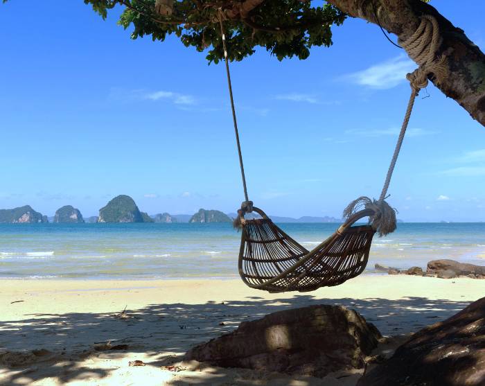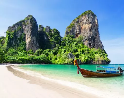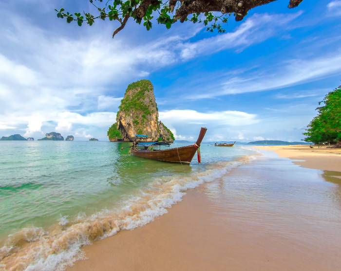 Krabi bietet eine Fülle von Aktivitäten und wunderschöne Strände, mit Blick auf die vielen Kalksteinklippen und kleinen Inseln, die charakteristisch für die Gegend sind.