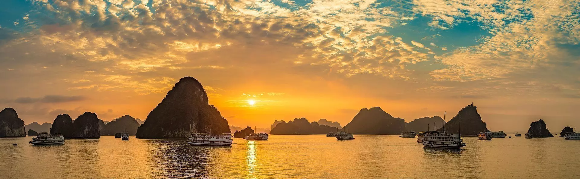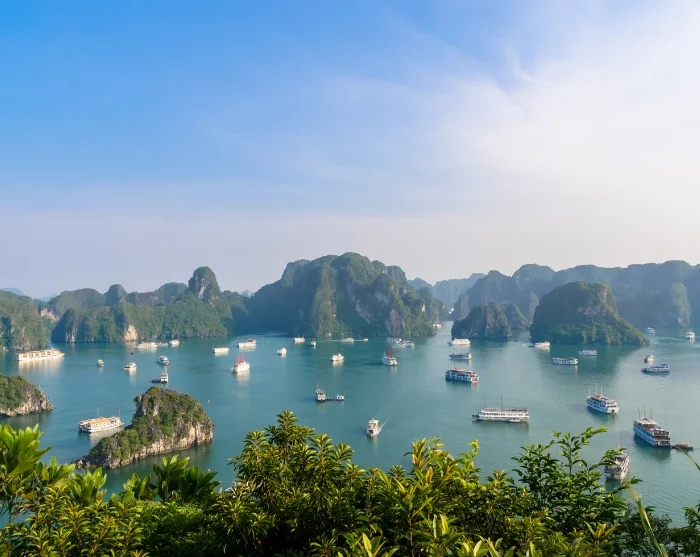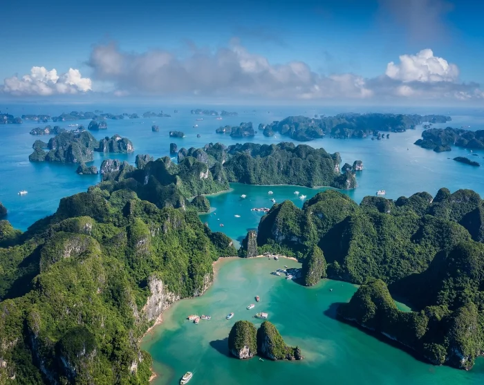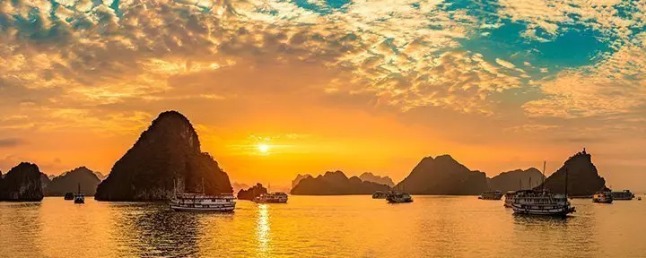 Die Halong-Bucht zählt zu Vietnams beeindruckendsten Naturwundern. Hunderte grüne Kalksteinfelsen ragen steil aus dem Meer, dessen Farbe im Jahresverlauf von tiefem Blau zu intensivem Jadegrün wechselt. Die größte Insel, Cat Ba, beherbergt mehrere Dörfer, während einige der kleinen Inseln von winzigen Fischergemeinden bewohnt sind. Für Reisende ist die Halong-Bucht in erster Linie ein Naturwunder von Weltrang. Für die Vietnamesen aber ist sie ebenso ein Ort voller Mythen, Drachenlegenden und sagenhafter Geschichten. Mit einer Fläche von rund 1.500 km² ist die Bucht seit 1994 Teil der UNESCO Welterbeliste.
