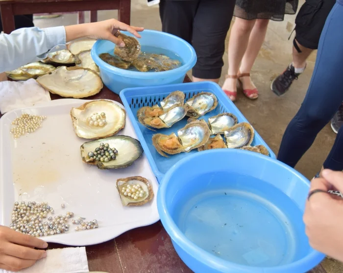 Später legt das Boot an einer lokalen Perlenfarm an, bei der Sie spannende Einblicke in die traditionelle Perlenzucht erhalten. Hier haben Sie zudem die Möglichkeit, in ein Kajak zu steigen und lautlos durch die beeindruckende Naturkulisse zu paddeln.