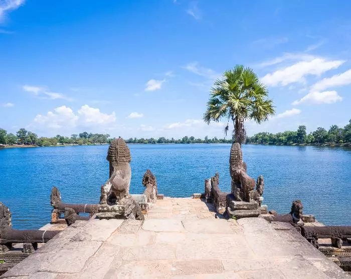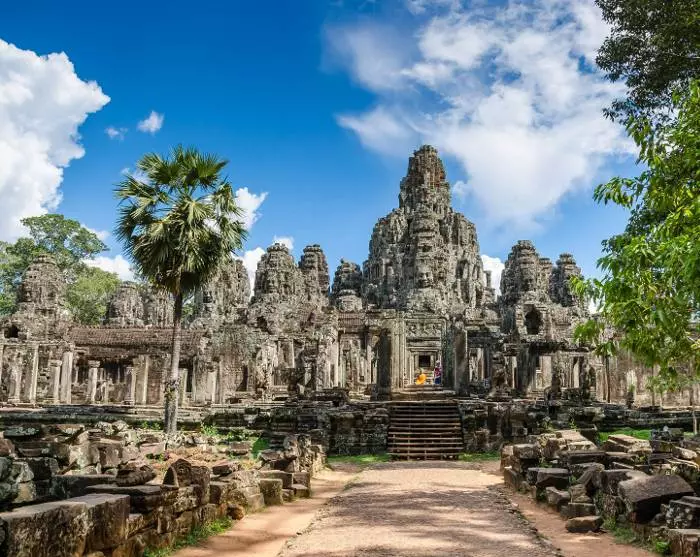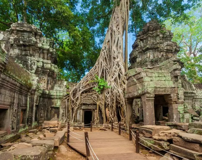 Sie wachen früh auf, denn heute erleben Sie eines der größten Sehenswürdigkeiten der Welt: die zerstörte Stadt Angkor, die auf der UNESCO-Weltkulturerbeliste steht. Angkor war ursprünglich die Hauptstadt des Khmerreichs, und die zerstörte Stadt liegt nur 5 km nördlich von Siem Reap, wo Sie mit Ihrem Guide hinfahren.
