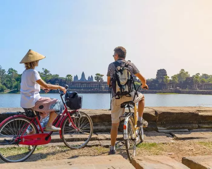 Sie verlassen Vietnam und fliegen weiter in die charmante Stadt Siem Reap in Kambodscha. Hier können Sie einen Spaziergang im French Quarter mit seinen charmanten alten Häusern unternehmen oder am Fluss der Stadt entlang spazieren, wo Sie köstliche Cafés und gute Restaurants finden. Sie erleben das achte Weltwunder Angkor Wat auf einer morgendlichen Fahrradfahrt und das lokale Leben auf einer schönen Bootsfahrt auf dem Tonlé Sap Lake.
