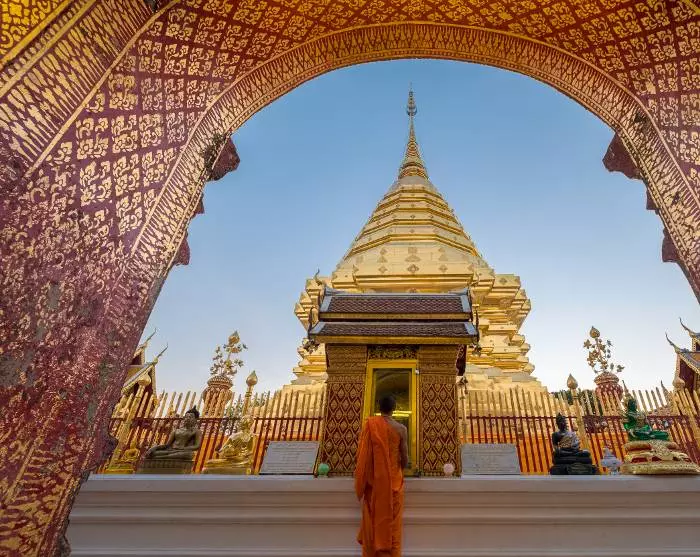 Sie landen in der zweitgrößten Stadt Thailands, Chiang Mai, einer Stadt, die reich an Kultur, Geschichte und malerischen Landschaften ist. Die Stadt befindet sich in einem Tal, das von Bergen umgeben ist, darunter Doi Inthanon, den höchsten Berg Thailands. Chiang Mai ist auch die ehemalige Hauptstadt des alten Lanna-Reichs, das von 1292 bis 1775 existierte, und Sie werden daher feststellen, dass es in dieser Zeit viele Einflüsse in der Stadt gibt.