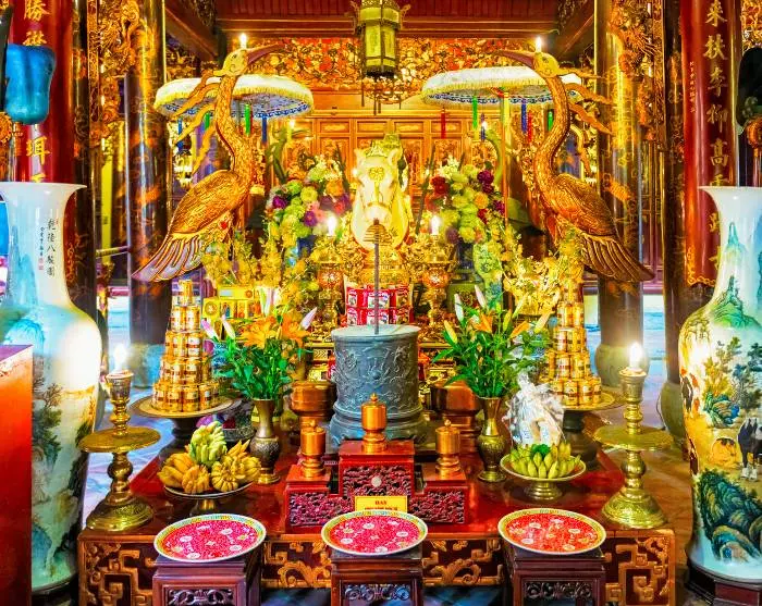Sie halten auch am kleinen Tempel Bach Ma in Hanois Altstadt. Der Tempel soll Hanois ältester sein, der von Kaiser Ly Thai To zu Ehren seines weißen Pferdes errichtet wurde, das bei der Gründung von Hanoi eine zentrale Rolle spielte. Der Tempel ist bekannt für seine traditionelle vietnamesische Architektur mit beeindruckenden Holzschnitzereien und aufwendigen Details.