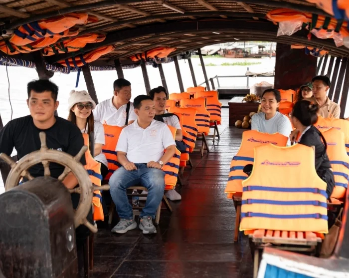 Nach einer etwa 2 1/2-stündigen Fahrt erreichen Sie die Stadt Cai Be. Dort gehen Sie an Bord eines Schiffes und legen ab zu einer Fahrt durch das üppige Mekongdelta. Sie besuchen lokale Werkstätten, in denen talentierte Kunsthandwerker Produkte aus Kokos herstellen. Anschließend fahren Sie in einem kleinen Sampan – einem traditionellen, geruderten Holzboot – durch die schmalen, mäandernden Kanäle des Mekong-Deltas.