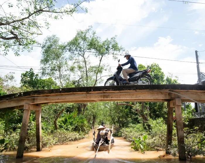 Sie erleben auch das üppige Mekongdelta, fahren mit dem Boot unter Palmen auf kleinen Kanälen und besuchen das Nachhaltigkeitsprojekt in Vinh Long, wo Sie Einheimische treffen und einen Einblick in das Alltagsleben auf dem Land bekommen.