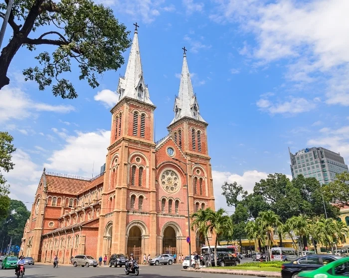 Gegenüber der Alten Post liegt die berühmte, im den Jahren 1863 bis 1880 gebaute Kathedrale Notre Dame. Mit ihren charakteristischen roten Ziegeln und hohen Turmspitzen ist sie ein beeindruckendes Zeugnis der französischen Kolonialzeit.