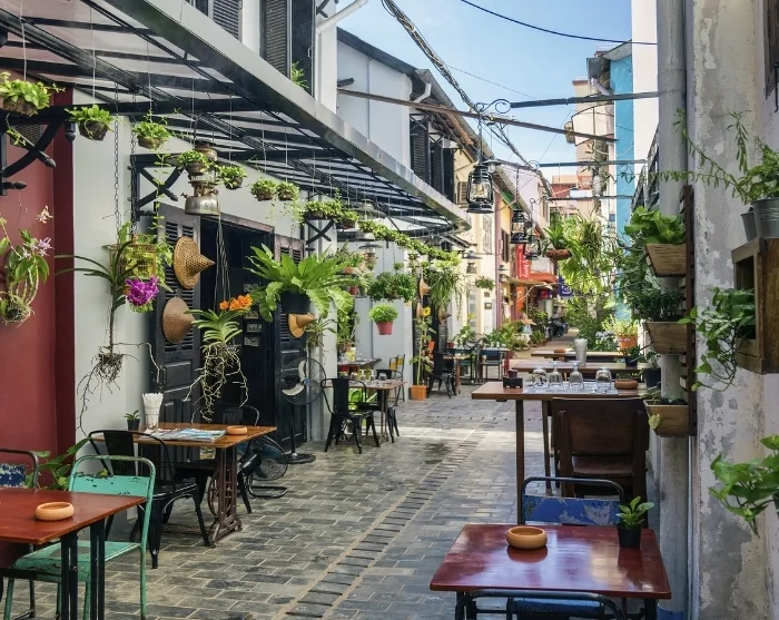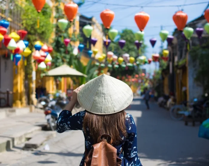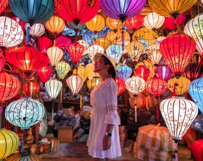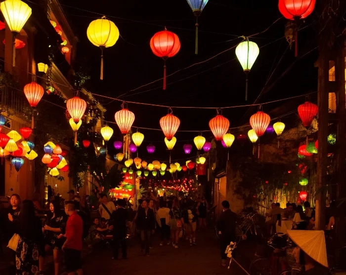 Von dem Fluss führt ein Labyrinth kleiner charmanter Gassen weg. Eine farbenfrohe Mischung japanischer Holzhäuser, chinesischer Versammlungshäuser, französischer Gebäude aus der Kolonialzeit und charakteristischer Gemischtwarenhandel wechselt sich dort ab. Bunte Laternen hängen wie Girlanden über den Straßen und sorgen insbesondere bei Einbruch der Dunkelheit für ein besonderes Flair. Geschäfte, Straßenküchen, Cafés und kleine Restaurants reihen sich aneinander und laden zu entspannten Momenten und neugierigen Entdeckungen ein.