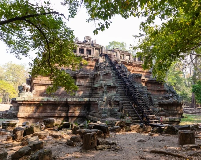 Sie werden auch Phimeanakas besuchen, einen pyramidenförmigen Tempel, hinter dem zwei Weiher liegen, die früher religiösen Ritualen dienten. Gehen Sie ganz nach oben im Tempel und genießen Sie von dort die herrliche Aussicht auf die Anlage in Angkor.