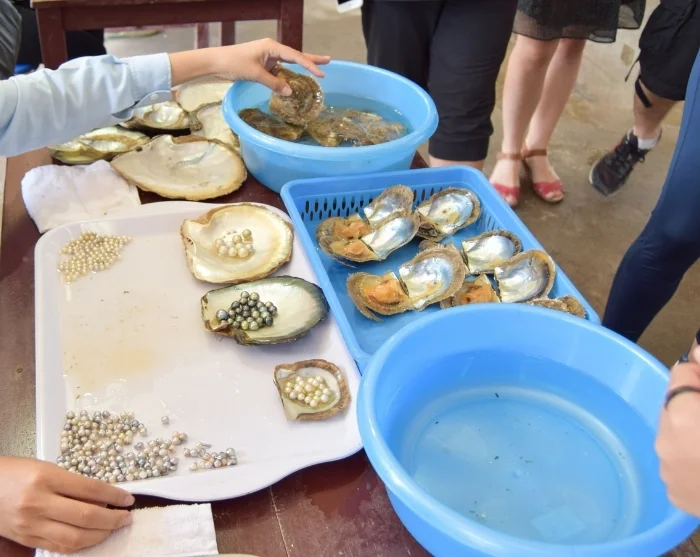 Später legt das Boot an einer regionalen Perlenfarm an, wo Sie einen Einblick in die traditionelle Perlenzucht bekommen. Dort können Sie auch mit einem Kajak still durch die schöne Natur gleiten.