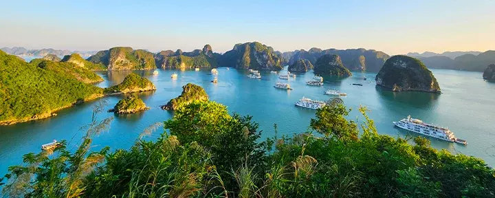 Von Hanoi führt die Reise in Richtung Osten zur Halong-Bucht, wo Sie mit einem Mini-Kreuzfahrt durch die Kalksteinklippen fahren. Sie statten der Ti Top Island einen Besuch ab und können baden und die Aussicht von ganz oben genießen, werden eine große Tropfsteinhöhe erkunden, an Bord übernachten und zum Morgenlicht auf dem smaragdgrünen Wasser aufwachen.