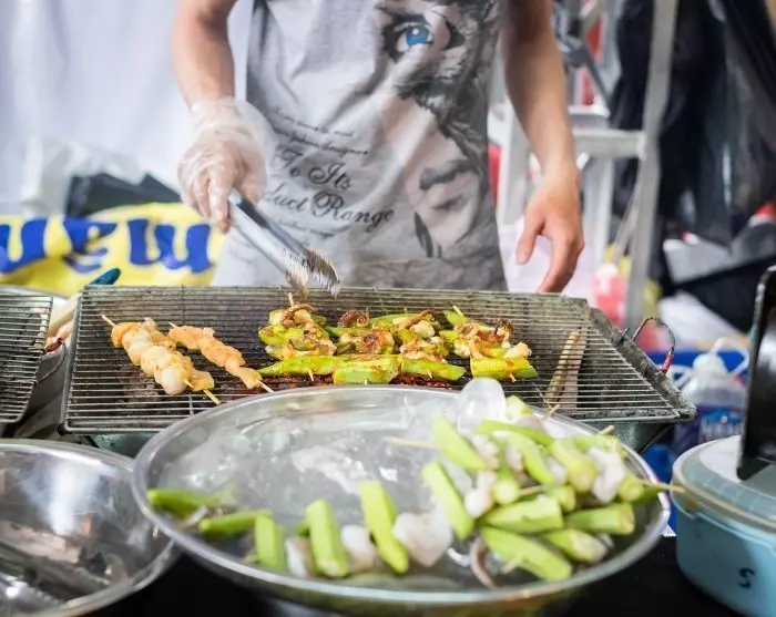 Sie erreichen ein historisches Lokal, das für seine köstlichen Nachspeisen bekannt ist. Probieren Sie eine der Suppen oder gegrillte Bananen im Klebreismantel mit Kokosnussmilch.