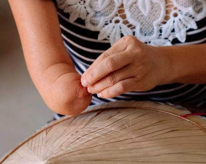 Als nächstes besuchen Sie ein lokales Haus, in dem Sie die talentierte Handwerkerin Frau Thuy treffen, die seit über vierzig Jahren traditionelle Kegelhüte herstellt. Erleben Sie ihre Leidenschaft und Kunstfertigkeit und hören Sie einige ihrer persönlichen Geschichten. Die Reise geht danach weiter in ein lokales Restaurant, wo Sie sich auf ein köstliches Erlebnis mit den berühmten gedämpften Reiskuchen von Hue, Bánh Bèo Hue, freuen können.