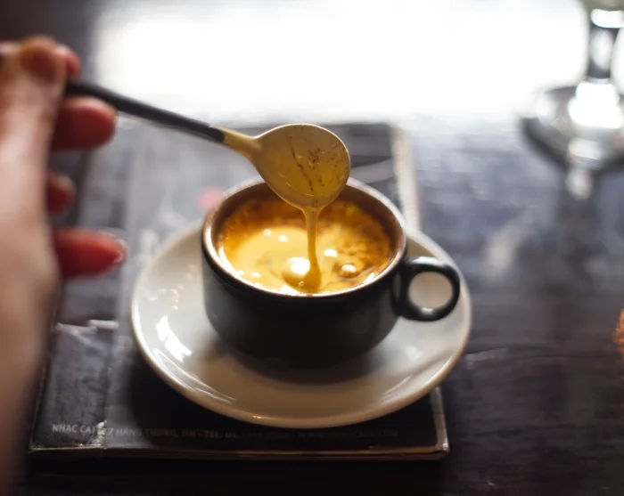 Begeben Sie sich selbstständig zum Treffpunkt, dem Hidden Gem Café – einem versteckten, nachhaltigen Coffeeshop. Hier erhalten Sie eine kurze Einführung und können zusehen, wie der ikonische vietnamesische Egg Coffee zubereitet wird.