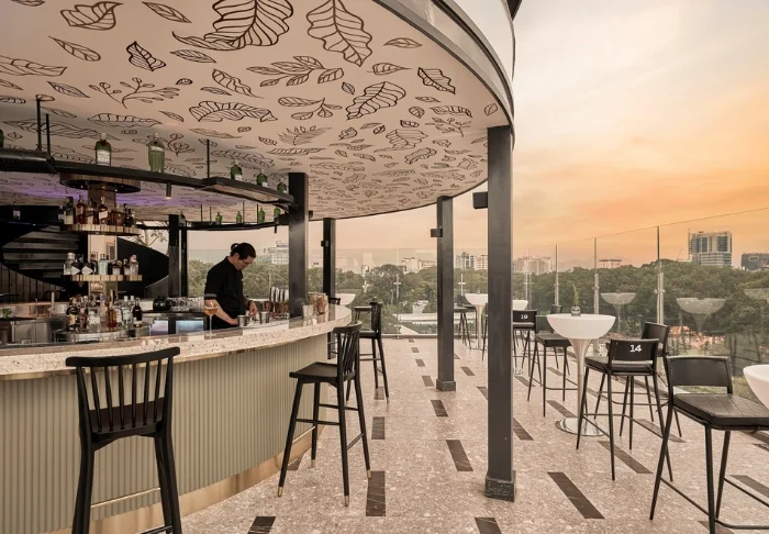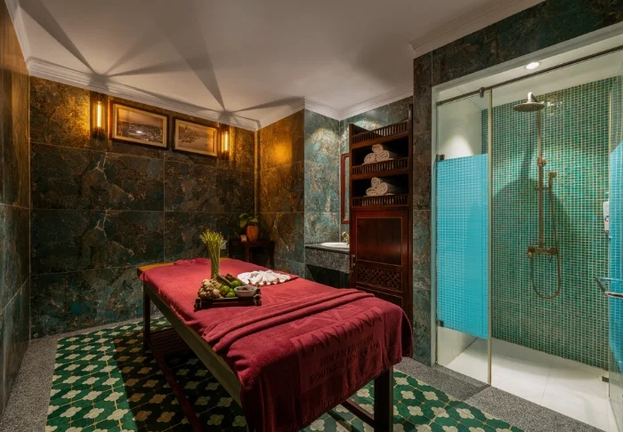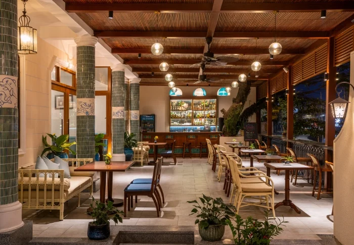 Das Hotel verfügt außerdem über mehrere Bars, jede mit ihrem eigenen Charme. Le 10° 19′ 44″ ist eine tropische Gartenbar mit entspannter Atmosphäre. Dort wird auch der Signature-Cocktail „Planteur de la Patronne“ serviert. La Manufacture d’Opium ist eine Lounge, die von der Indochina-Zeit inspiriert ist. Sie versprüht eine nostalgische Stimmung. Hier können Sie sich in Ledersesseln zurücklehnen und ein Glas Ricard, Khmer-Rum oder einen exotischen Cocktail genießen.