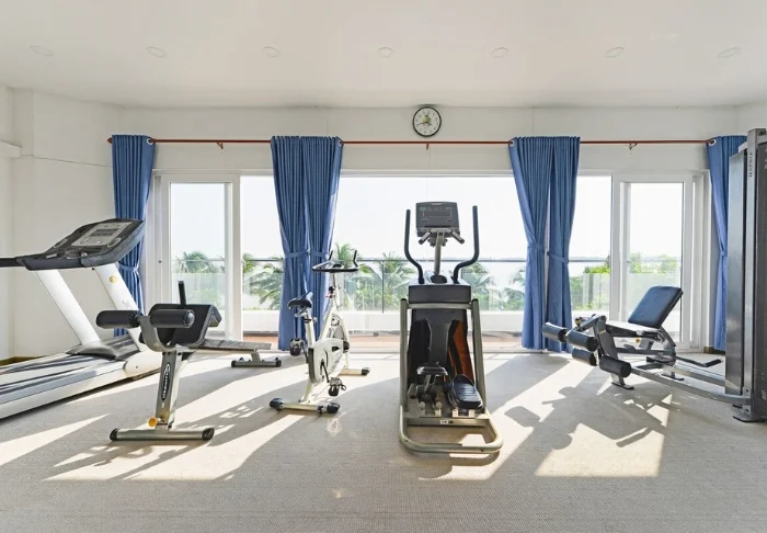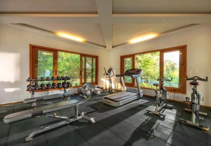 Zur weiteren Einrichtung gehören ein Fitnessraum und eine Wellnessabteilung, in der Sie sich mit einer entspannenden Massage verwöhnen lassen können.