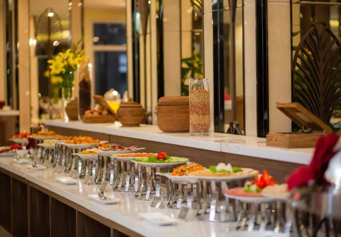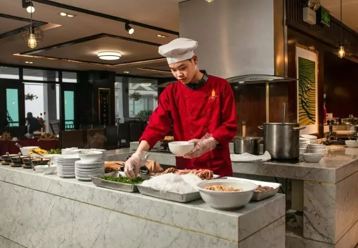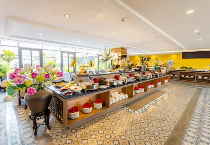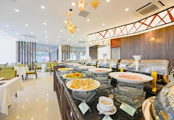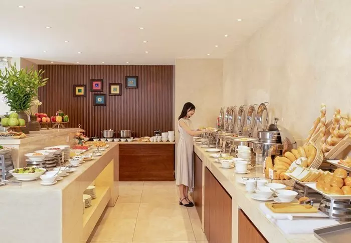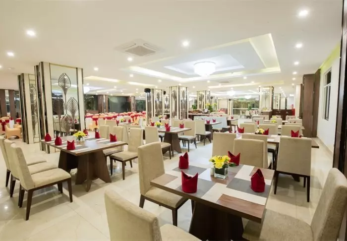 Im Restaurant des Hotels werden sowohl vietnamesische als auch internationale Spezialitäten serviert. Das Frühstück bietet ein abwechslungsreiches Buffet mit frischem Obst, hausgebackenem Brot und warmen Speisen.