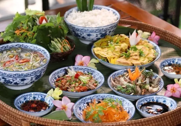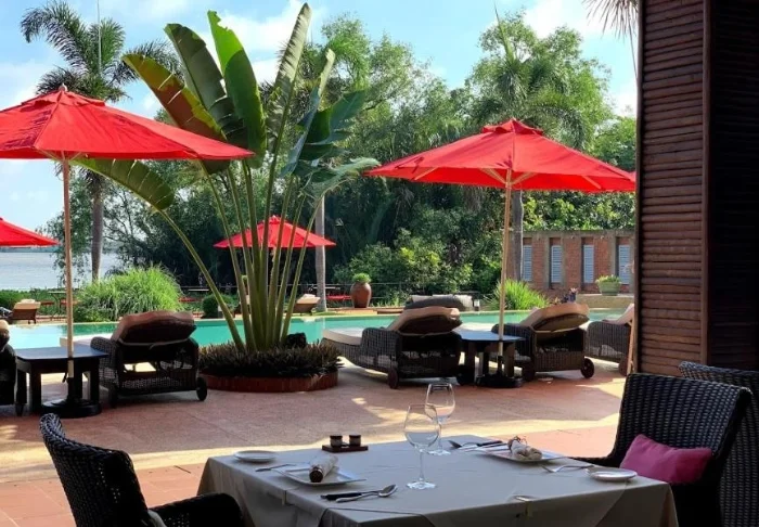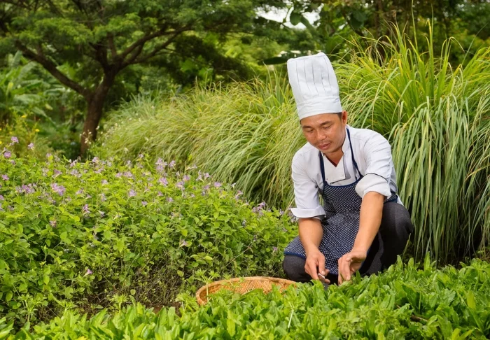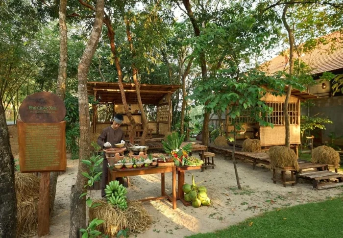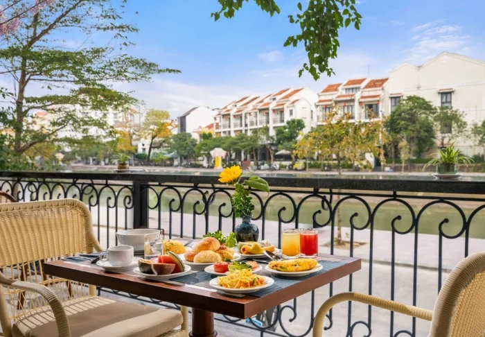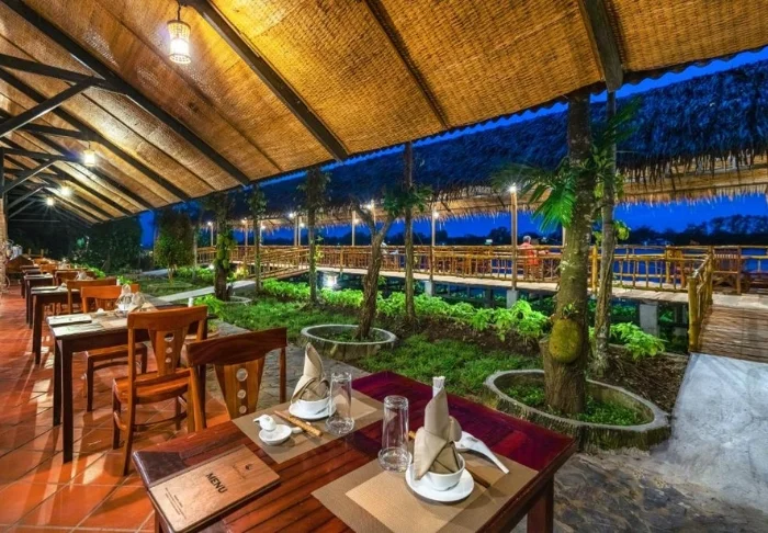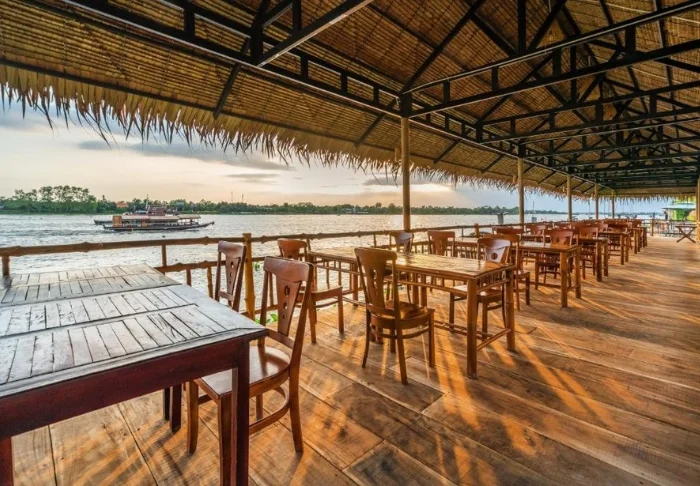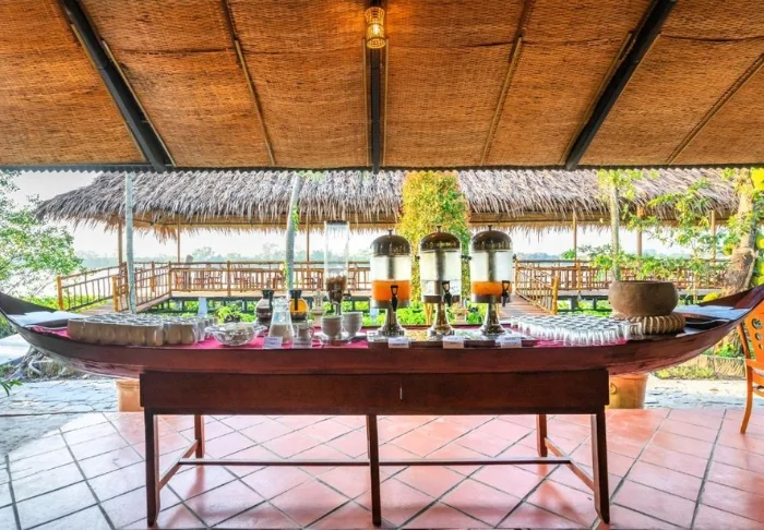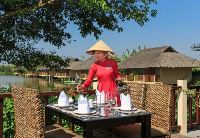 Die Speisekarte des Restaurants präsentiert regionale Zutaten und verwöhnt Sie mit klassischen vietnamesischen Gerichten, die frische Kräuter, Fisch und Früchte aus dem Delta in den Mittelpunkt stellen. Viele Zutaten stammen direkt aus dem hoteleigenen Garten. Ihr köstliches Essen genießen Sie dabei mit traumhaftem Ausblick auf den Fluss, während die Sonne sanft hinter den Palmen versinkt.