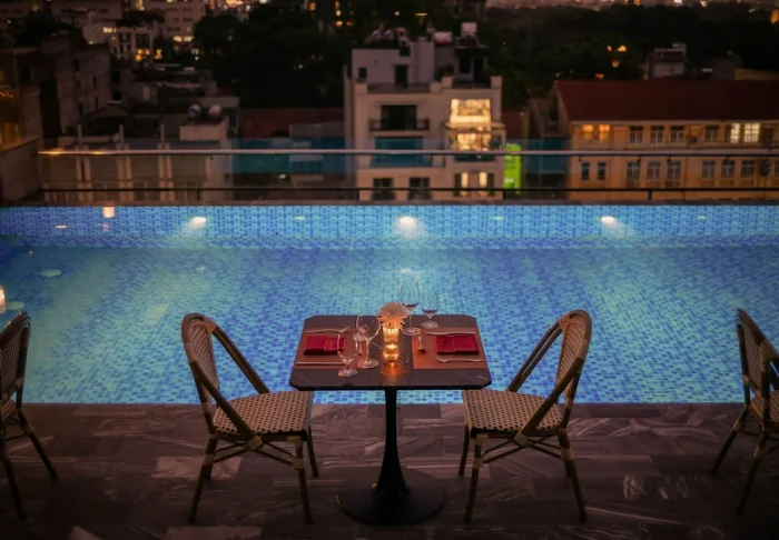 Das hoteleigene Restaurant, November, befindet sich im obersten Stockwerk und serviert der Jahreszeit entsprechende Speisen sowohl mit vietnamesischer, als auch mit europäischer Note. Hier können Sie Ihr Abendessen mit Blick auf die Stadt genießen. Sie können Ihren Tag auch in der Hotelbar, Bar Dinh, ausklingen lassen, einer eleganten Rooftop Lounge mit hervorragenden Cocktails und Panoramablick auf Hanoi.