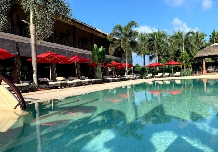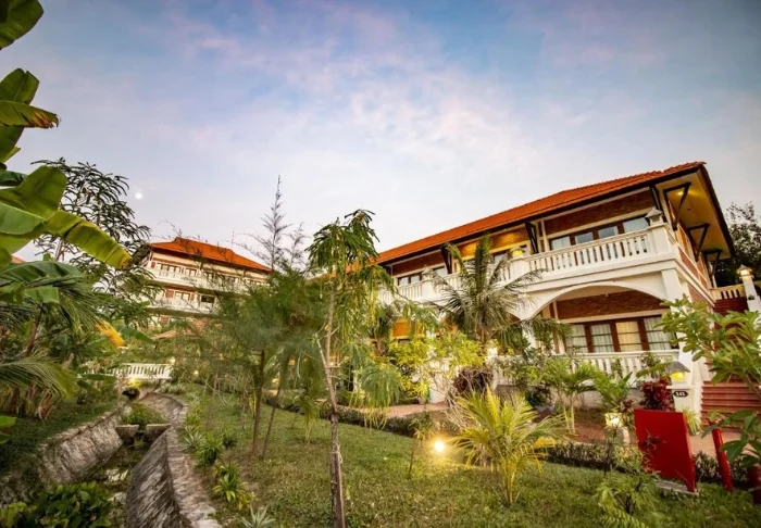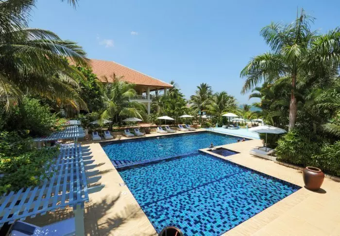 Das Resort wurde in elegantem französischem Kolonialstil errichtet und ist von tropischen Gärten umgeben. Der elegante französische Stil setzt sich in allen 70 geschmackvoll eingerichteten Zimmern fort, die alle mit WLAN, Klimaanlage, Safe, TV-Gerät, Minibar, Tee- und Kaffee-Ecke sowie mit einem eigenen Badezimmer ausgestattet sind. Von Ihrem Balkon aus haben Sie eine tolle Aussicht auf die wunderschönen Gärten.