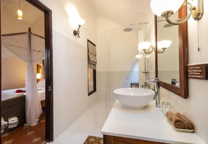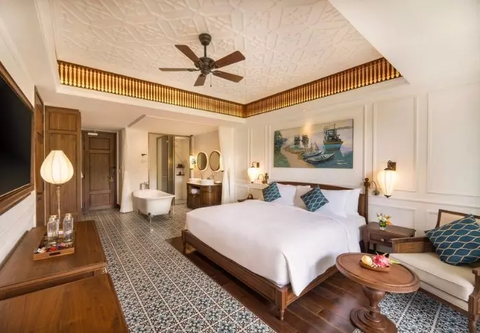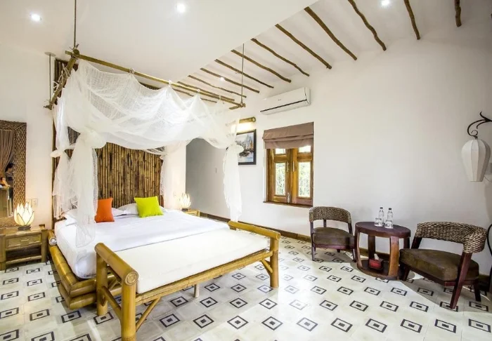 Das Hotel wurde im modernen vietnamesisch-kolonialen Stil erbaut und verfügt über 37 Zimmer, was für eine intime und entspannte Atmosphäre sorgt. Sie übernachten standardmäßig in einem Superior-Zimmer, das hell und geschmackvoll mit Holzelementen eingerichtet ist. Große Fenster und dezente Details, inspiriert vom unverwechselbaren Stil Hoi Ans, verleihen dem Zimmer eine besondere Note. Zur Ausstattung gehören Klimaanlage, WLAN, Minibar, Wasserkocher, Safe und Fernseher. Im Bad erwarten Sie eine Regendusche sowie kostenlose Pflegeprodukte.