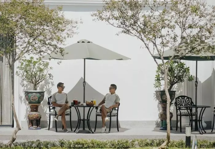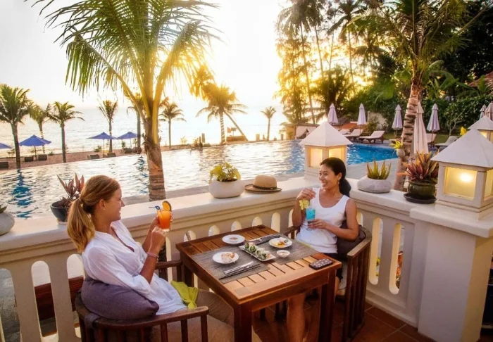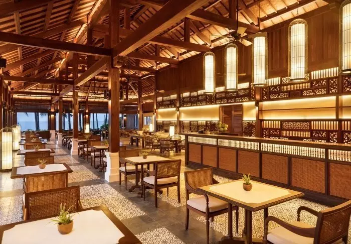 Das Hauptrestaurant des Resorts, Le Café, bietet ein leckeres Frühstücksbuffet sowie mittags und abends À-la-carte-Gerichte. Hier werden sowohl internationale als auch authentisch-vietnamesische Gerichte geboten. Im Le Salon in der Lobby werden Tee, Kaffee und Kuchen, Wein und Cocktails serviert. Die Poolbar La Piscine bietet erfrischende Getränke und Snacks. In der Strandbar können Sie ein leichtes Mittagessen und ein Nachmittagsgetränk zu sich nehmen, während Sie über den Strand blicken, an dem die Wellen sanft an Land rollen.