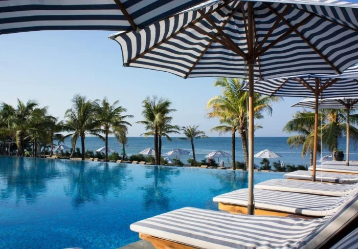 Blue Ocean verfügt über einen Privatstrand mit Sonnenliegen und Sonnenschirmen, von dem aus Sie den Blick auf das türkisfarbene Meer genießen können. In Mui Ne können recht hohe Wellen vorkommen. Wenn Sie bei Wellengang nicht so gerne im Meer schwimmen möchten, verfügt das Resort zum Glück über einen einladenden Poolbereich. Dort können Sie ein erfrischendes Bad nehmen und sich mit einem guten Buch entspannen.