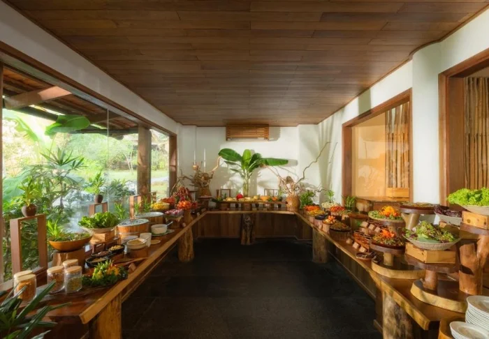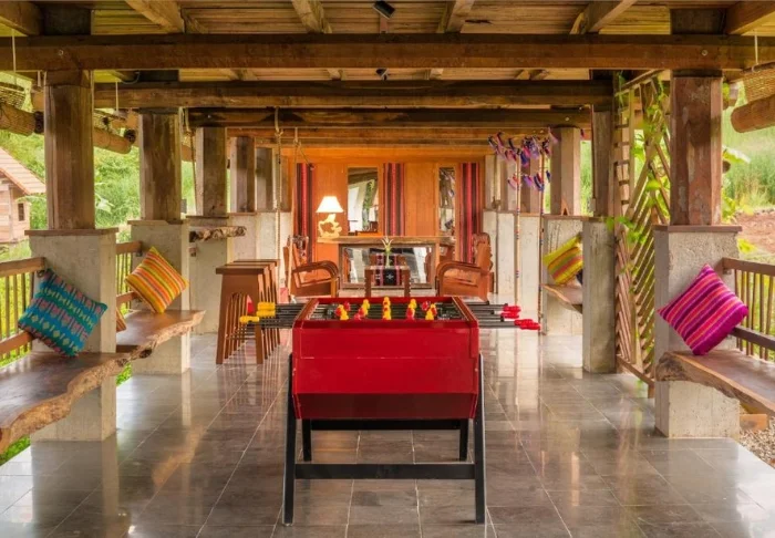 Sie können dort in und rund um die tropischen Bambushütten entspannen, die Aussicht auf die Reisfelder, den wunderschönen Garten und die herrlichen Berge genießen. Diese Aussicht können Sie auch bewundern, während Sie am Balkon oder im Outdoor-Restaurant des Resorts frühstücken.