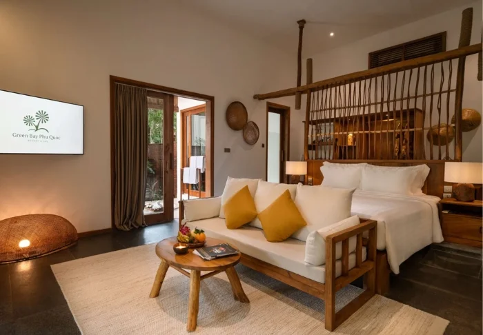 Das Green Bay Phu Quoc Resort & Spa liegt an einem der besten Strände von Phu Quoc auf der Westseite der Insel. Das Resort liegt in einer Umgebung mit wunderschöner Natur, mit dichtem grünen Bewuchs, Gärten, Kräutergärten, einem See, Palmen, schattigen Bäumen und einem Panorama auf die Thailandbucht.