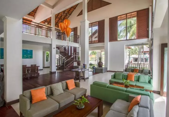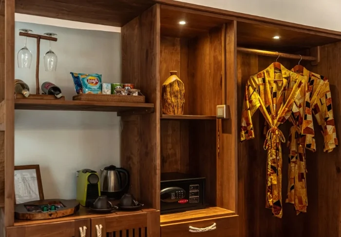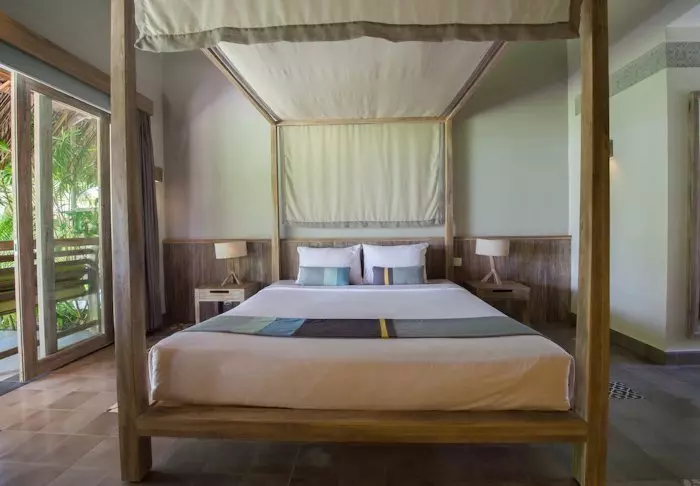 Das Resort verfügt über wunderschöne, geräumige Zimmer und Bungalows inmitten der üppigen, gepflegten Gärten mit leichtem Zugang zu den Pfaden, die zum Swimmingpool und zum Strand führen. Alle Zimmer und Bungalows sind in hellen Farben gehalten und mit wunderschönen Holzmöbeln ausgestattet. Jeden Wohneinheit verfügt über eine Klimaanlage, WLAN, eine Minibar, eine Sicherheitsbox, einen Fernseher und einen elektrischen Wasserkocher, damit Sie sich eine Tasse Kaffee oder Tee auf Ihrer privaten Terrasse zubereiten können. Das Badezimmer ist mit einer Dusche ausgestattet. Außerdem finden Gäste Pflegeprodukte, einen Haartrockner, einen Bademantel und Hausschuhe.